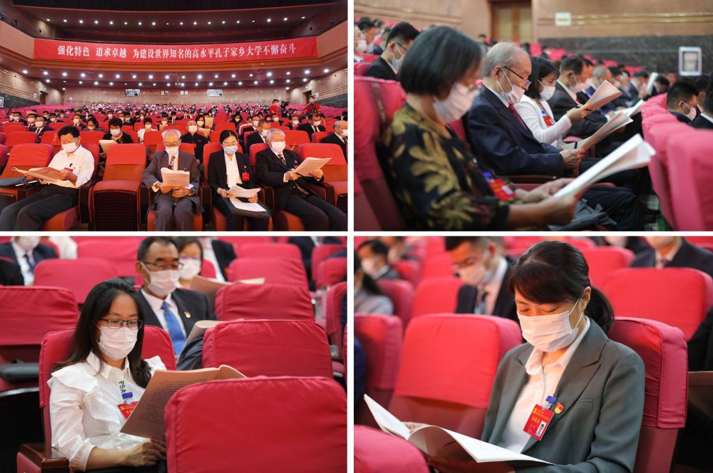 报告最后,邢光号召全校党员干部和师生员工更加紧密团结在以习近平同志为核心的党中央周围,在省委的坚强领导下,不忘初心、牢记使命,埋头苦干、勇毅前行,以“踏平坎坷成大道,斗罢艰险又出发”的顽强意志,奋力开创新时代孔子家乡大学高质量发展的新局面,以优异成绩迎接党的二十大胜利召开。