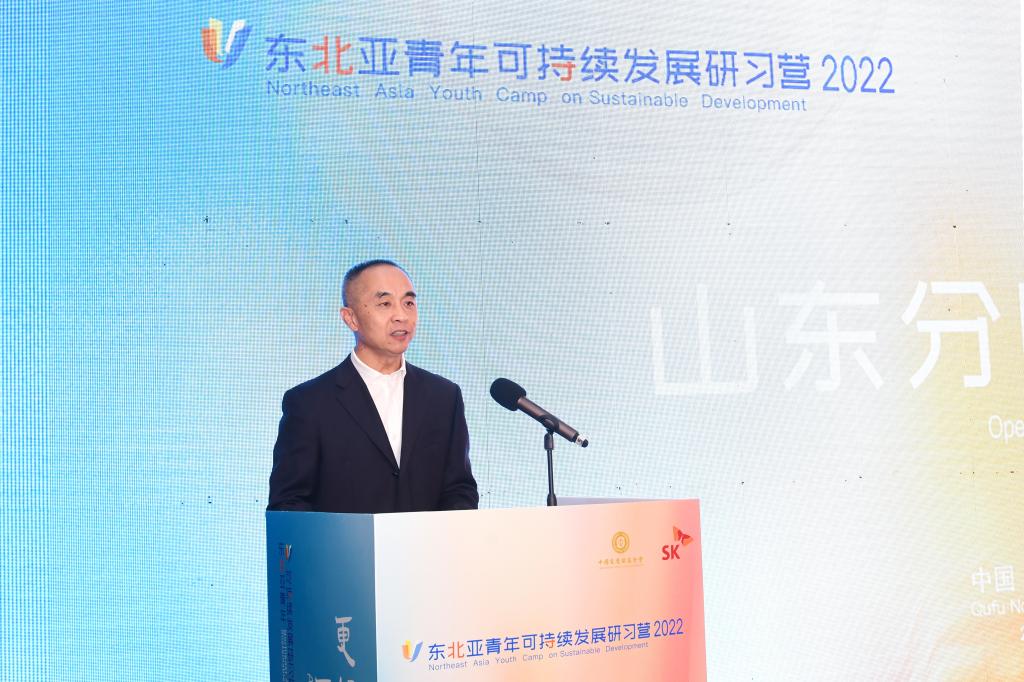 中国宋庆龄基金会副秘书长李安晋在致辞中代表中国宋庆龄基金会,对本次活动的举办表示热烈祝贺,对各国青年朋友们表示热烈欢迎。他表示,去年首届东北亚青年可持续发展研习营成功举行,难忘瞬间历历在目,今年以“文化使者、青年力量”为年度主题举办2022东北亚青年可持续发展研习营,恰逢其时。此次研习营,各位营员在中外青少年交流基地结伴学习、交流互鉴,感受儒家文化的独特魅力,希望大家在活动中认真观察、积极思考、深入交流,形成有深度、有价值的学习成果,在各分团中发挥带头作用。