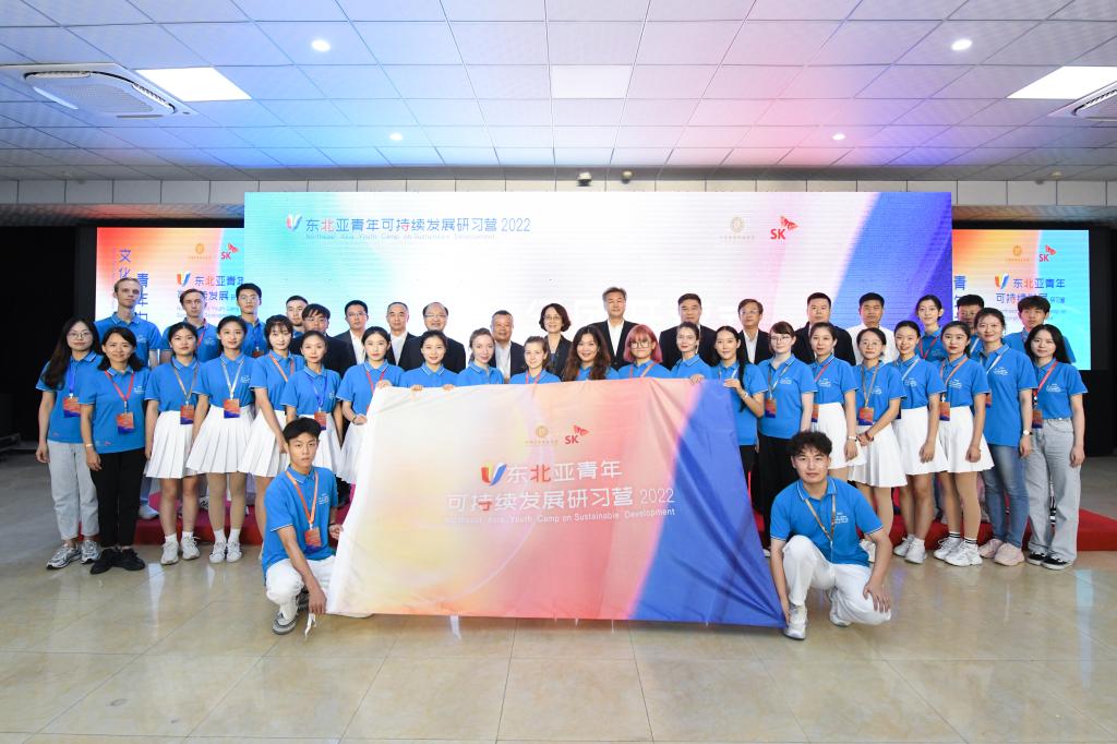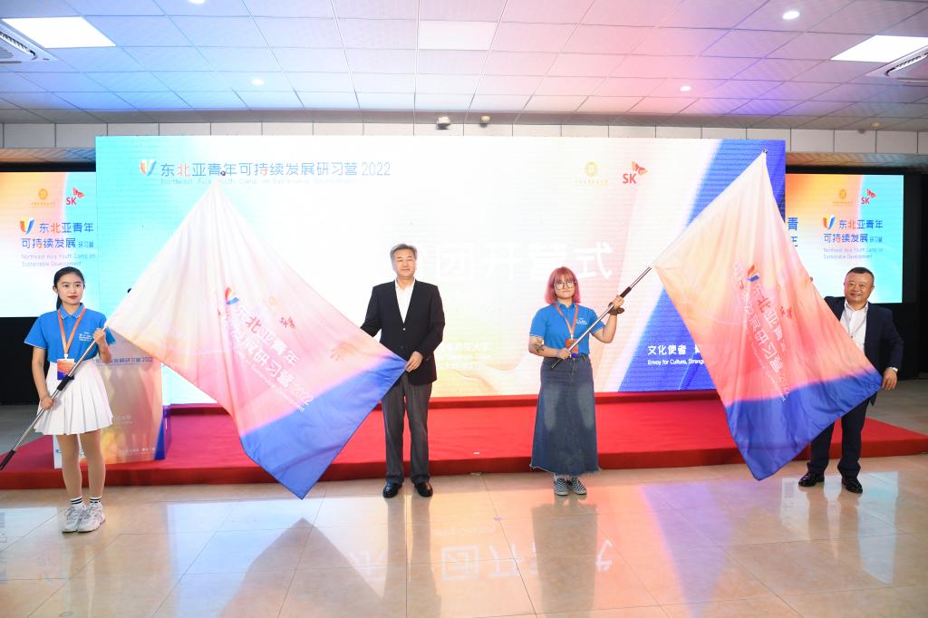 仪式最后,宋庆龄基金会副秘书长李安晋、韩国SK集团中国副总裁田福熙为研习营授旗。
