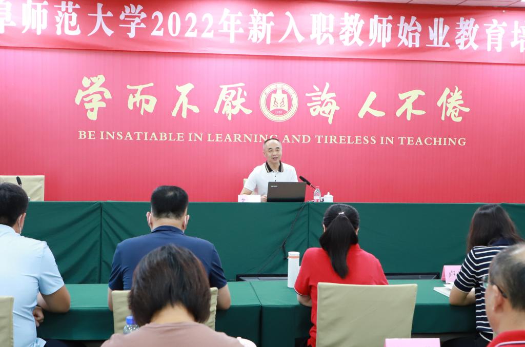 党委书记邢光以《大学之道与为师之德》为主题,为新入职教师上了一堂生动的“入职第一课”。”大学之道是守正开新之道,为人之师当立大志向“”大学之道是崇真尚实之道,为人之师当求大学问“”大学之道是止于至善之道,为人之师当做大先生“三方面深入浅出的讲解,点燃了在座每位老师的教育激情,让大家深切领悟教师不仅仅要重视教书,更要重视育人,育人的根本在育德。邢光寄语年轻同事,从进入曲园的这一刻起,要深思深悟大学之道,精研精修为师之德,以守正开新之姿,崇真尚实之态,止于至善之求,立下大志向,追求大学问,做好大先生,为传承孔子教化薪火、办好孔子家乡大学作出应有贡献。