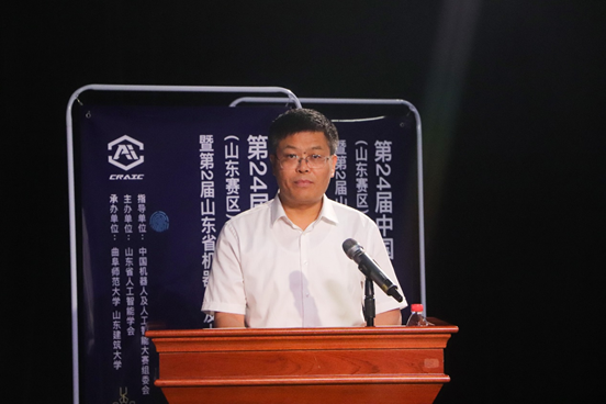 中国机器人及人工智能大赛组委会执行主任、中国人工智能学会机器人文化艺术专委会副主任委员方宝富,中国机器人及人工智能大赛山东赛区仲裁委员会主任、哈尔滨工业大学教授吕德生,曲阜师大党委副书记卢国强,山东省人工智能学会驻会副理事长、中国机器人及人工智能大赛(山东赛区)组委会主任林培光,出席开幕式。开幕式由曲阜师大工学院党委书记兼院长张书东主持。