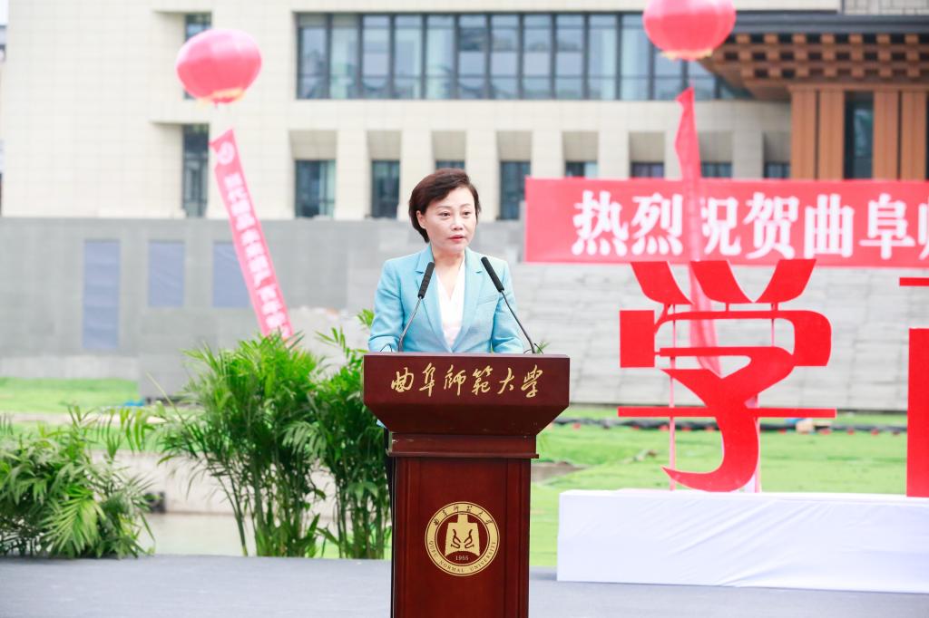 曲阜师大党委领导班子成员,学校离退休老同志代表、教职工代表、学生代表,共同见证、欢庆这一学校发展史上的里程碑时刻。