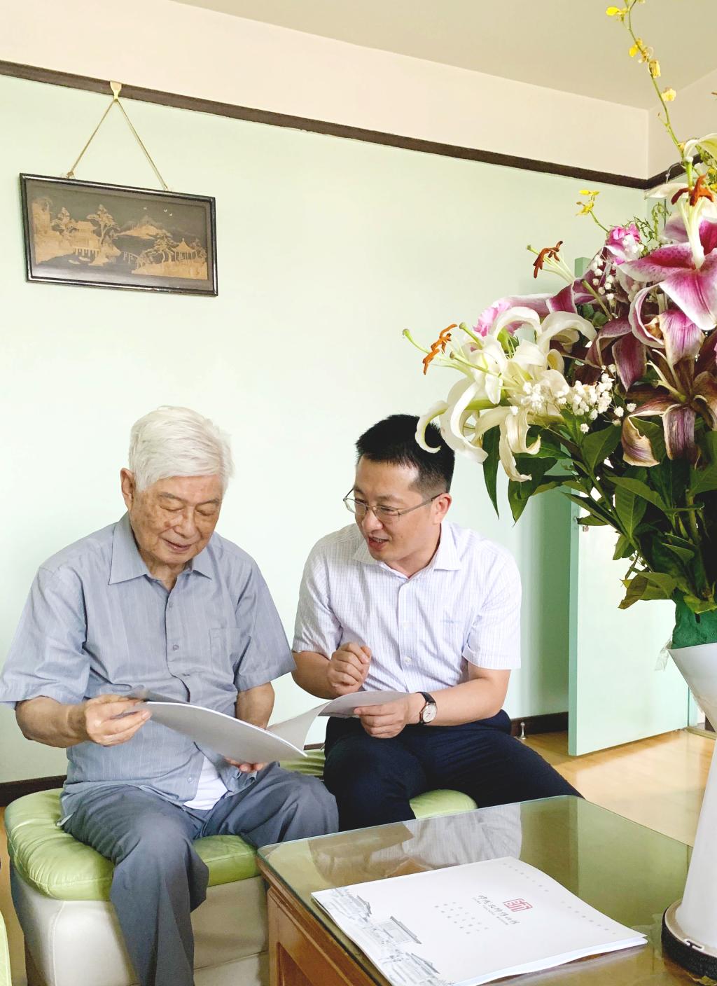 9月7日上午,九十余岁高龄的顾先生精神矍铄,亲切接见了馆长孙祥广一行。孙祥广转达了学校领导对先生长期以来给予鼎力支持的谢意敬意以及教师节的节日祝福,图文并茂地汇报了一年来博物馆取得的进展和成绩,敬请先生对博物馆建设特别是谋划的“名师书房”等重点工作给予指点和支持。