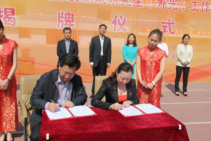 扈庆学在致辞中指出,我校是一所有近60年办学历史的应用型特色名校,具有良好的科研条件、较强的科研队伍和丰硕的科研成果,体育学科是我校的优势学科,也是山东省体育人才的重点培养基地,在全国具有较大影响力。这次与寿光市合作成立国民体质研究生工作站是校地合作的新尝试,我校将以此为契机,全面开展与寿光市各领域的深度合作。