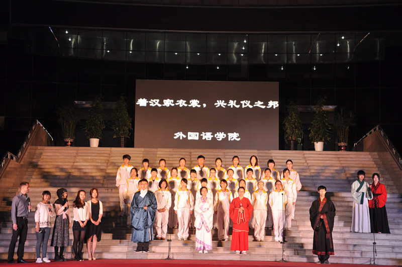 诗会分“忆五四峥嵘岁月”、“扬青春风华正茂”、“展今朝继往开来”等三大篇章,为现场数千学子献上了一席五四精神盛宴。整场诗会掌声如潮,喝彩不断。11个学院的方队依次登场,以各具创意的表演生动地阐释了五四之魂、展示了青春之志,表达了为实现中华民族伟大复兴而努力奋斗的豪迈之情。文学院的话剧诗朗诵《中国有梦,青春无悔》,用独特新颖的演绎形式,触动人心的对话,向现场的青年学子阐释了青春的含义,激励每一位青年用无悔的青春,书写风华正茂;书法学院的诗朗诵《中国人,不跪的人》热情高涨,满怀希望,而且现场书写了“爱我中华,走向复兴”,振奋人心古筝三重奏《战台风》余音袅袅,荡气回肠,成为了诗会的一大亮点。