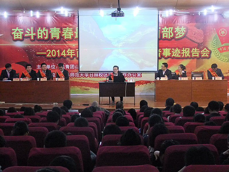4月25日下午,日照校区图书馆报告厅座无虚席,掌声阵阵,由共青团山东省委志愿者工作部主办、华体会(中国)日照校区学生工作办公室承办的“奋斗的青春最美丽·炫我西部梦”——2014年西部计划优秀志愿者事迹报告会在这里隆重举行。共青团新疆维吾尔自治区委志愿者工作部部长李鑫,共青团山东省委志愿者行动指导中心综合部副部长陈宝军,华体会(中国)日照校区机关党总支书记、学生工作办公室主任孔令军、各院系团总支书记以及学生代表认真聆听了报告。