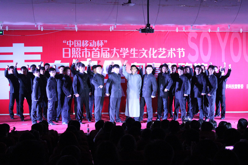 来自日照市的八所高校为观众带来十四个节目。伴随着优美的旋律,比赛现场气氛热情洋溢,每支参赛队伍都通过深情的朗诵、精彩的表演抒发了对祖国、对青春的无限赞美与热爱之情,为在场观众带来了一场绝佳的视听盛宴。我校《绿色青春,舞动曲园》融合了优美的舞蹈、生动的情景、贴近生活的表演以及豪迈大气的书法展示,用丰富的形式呈现了曲园生活的真实场景,而诵读者用他们的真情实感将这个故事用诗娓娓道来,不仅仅展现了曲园一所大学,更是当代大学的一个缩影,引起了场下大学生们的共鸣。《祖国,用青春的名义为你歌唱》带领着现场观众回到建国前的燃情岁月,展现了历史长河中祖国与青春的绝妙合唱。《壮哉青春》将十八岁的热血十八岁的豪情表现得淋漓尽致。以问答形式呈现的《以青春的名义宣誓》说出学子们“让生命的花朵,盛开在祖国最需要的地方”的伟大梦想。