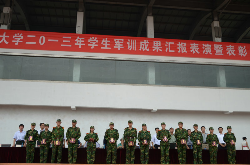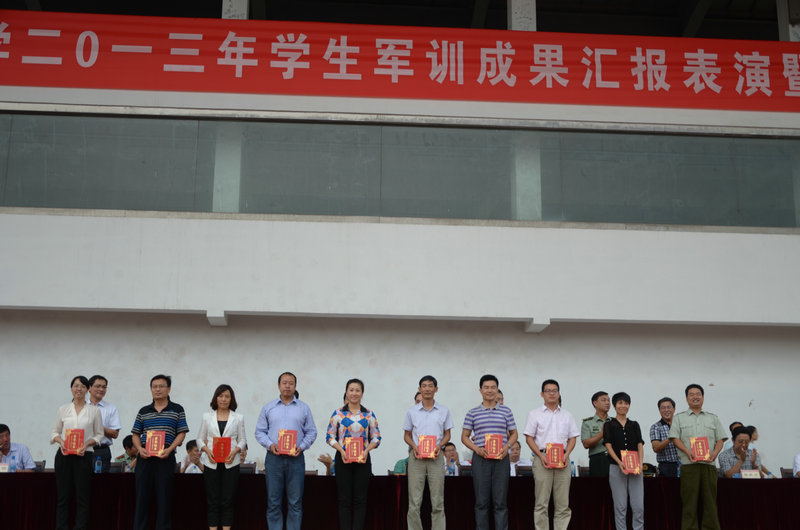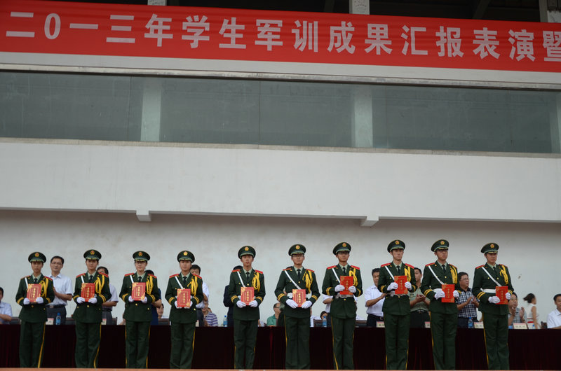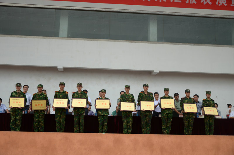 大会宣读了军训先进单位和个人名单,在主席台就坐的领导为获奖代表颁发了奖牌和证书。