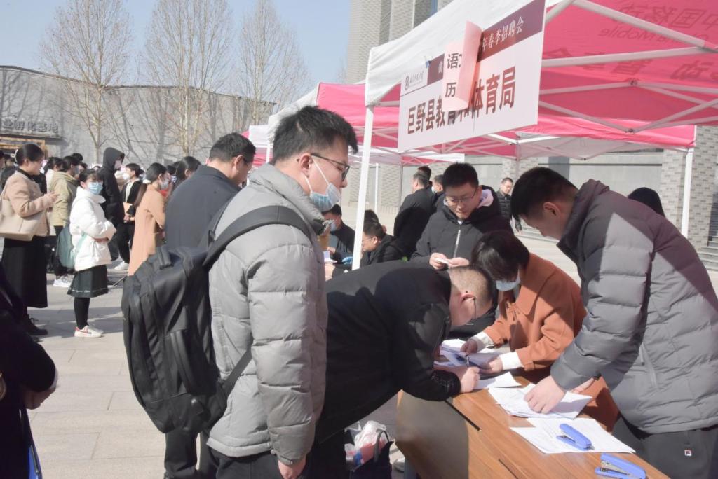 据悉,巨野县教体局校园专场招聘会于3月2日举办,此次招聘会提供了183个带编教师岗位,吸引了近300名毕业生现场咨询报名。最终,42位优秀学子以精湛的教学技能和过硬的专业素养获用人单位高度认可并成功签约。