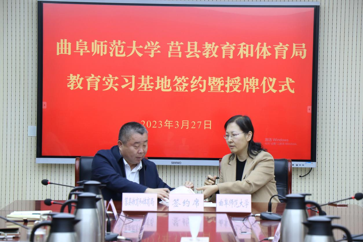 曲阜师大翻译学院讯 3月27日上午,华体会(中国)教育实习基地签约授牌仪式在日照市莒县教育和体育局举行。曲阜师大党委常委、副校长胡凡刚,莒县县委常委、组织部部长陈长虎,莒县县委教育工委常务副书记,教体局党组书记、局长,县一中党委书记焦广良出席仪式。
