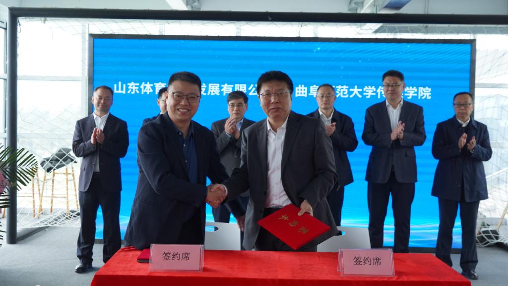 曲阜师大传媒学院讯 4月18日上午,曲阜师大传媒学院和山东体育频道发展有限公司举行合作签约仪式。曲阜师大党委常委、纪委书记、省监委驻华体会(中国)监察专员路学堂,山东广播电视台党委副书记、总编辑周盛阔,日照市委宣传部分管日常工作的副部长、市文明办主任王军卫,出席签约仪式。