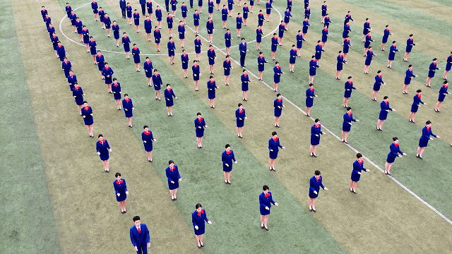 精彩纷呈的学生团体才艺表演将本次运动会开幕式推向高潮。体育科学学院的射艺表演,礼乐相和,在充满古韵的琴乐中,同学们变换阵型,以雄浑气势震撼四座;音乐学院学子的礼仪操表演,整齐的服装、挺拔的身姿、甜美的微笑、优美的体态,成为了赛场上一道靓丽的风景线;啦啦操社团带来了青春洋溢的啦啦操表演,时尚动感的旋律舞出了青春激情,唱响了青春赞歌;最后,由13个学院共793名学生组成的庞大体操方阵,展示了第九套广播体操表演,同学们迈着自信的步伐,把青春的活力带到操场的每一个角落。