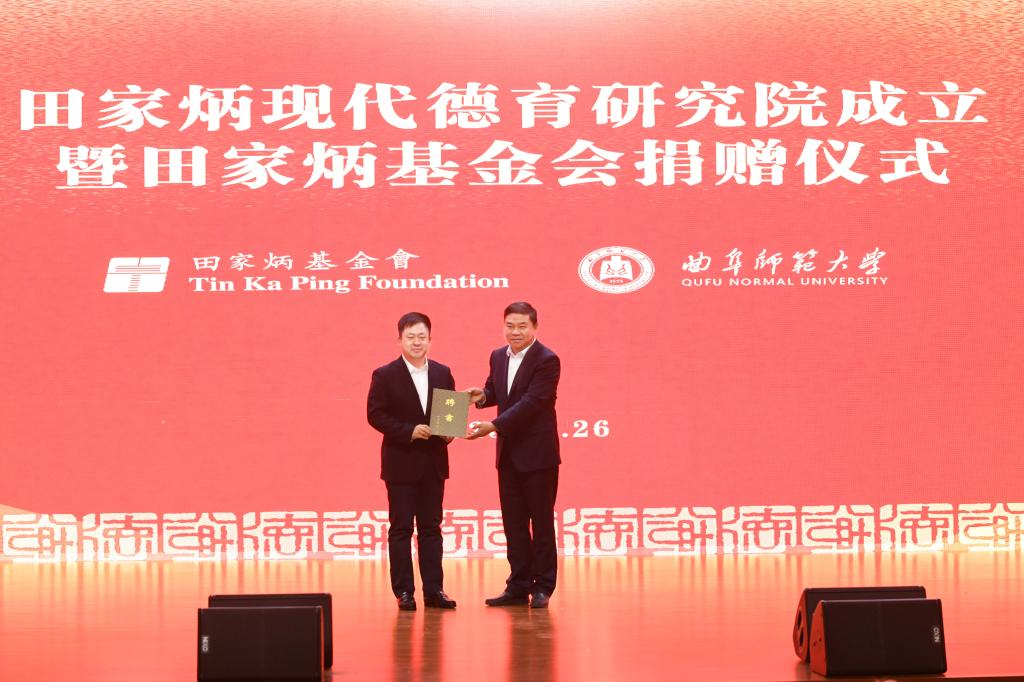 曲阜师大华体会官方网讯 为深入贯彻落实习近平总书记关于弘扬中华优秀传统文化的重要思想,推动中华优秀传统文化的创造性转化、创新性发展,培育和践行社会主义核心价值观,4月26日上午,华体会(中国)隆重举行田家炳现代德育研究院成立暨田家炳基金会捐赠仪式。