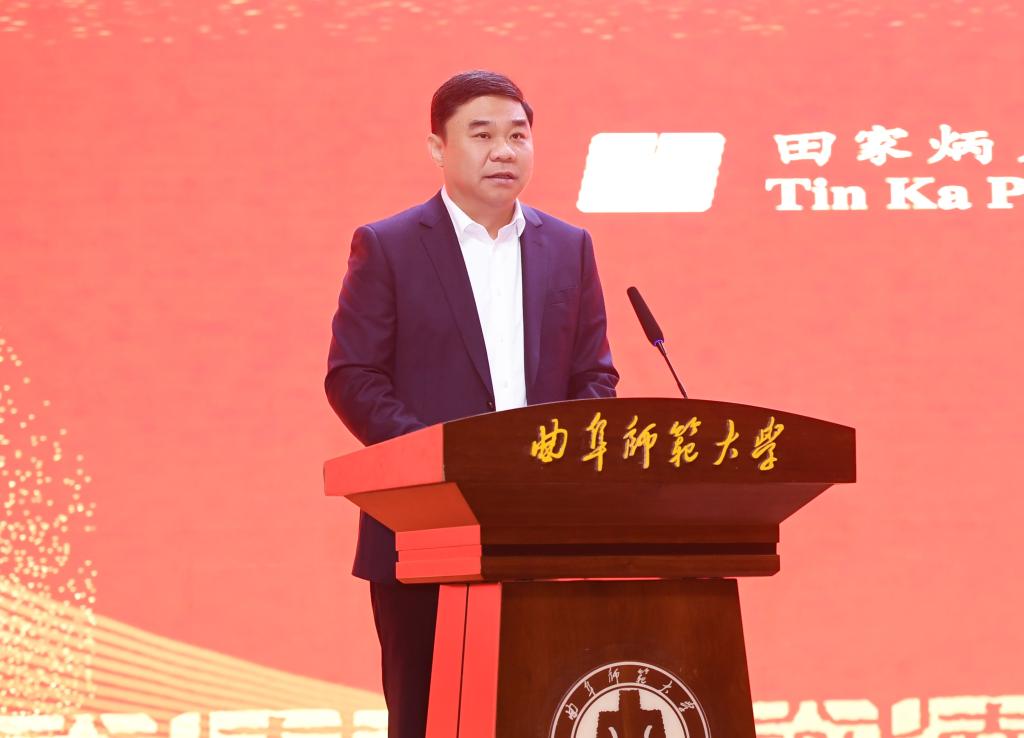 邢光在致辞中代表全校师生向参加仪式的各位领导和嘉宾表示热烈欢迎,向田家炳基金会长期以来给予学校的支持和帮助,致以衷心的感谢和崇高的敬意。邢光表示,成立“田家炳现代德育研究院”是田家炳基金会关心支持学校建设发展的又一重要见证,是学校服务现代德育需求、服务新时代美德山东建设的责任使命,也是发掘田家炳德育思想现代价值、传承弘扬田家炳精神的应有之义,更是搭建高端学术平台,吸引凝聚高端创新团队,壮大德育研究力量的重要举措。学校将以成立研究院为新契机、新起点,瞄准现代德育的重大需求,聚焦教育学科发展前沿,充分发挥优秀传统文化和教师教育研究特色优势,依托教育部师德师风建设基地、山东省大中小学传统文化教育基地、教师博物馆等平台,整合校内外资源,组织一批精干学术力量,围绕现代德育面临的重大理论和实践问题,开展高水平的德育基础理论及实践改革创新研究,努力产出一批有显示度的标志性成果,为推动全国德育改革和发展打造“曲师样板”,提供“曲师经验”,贡献“曲师力量”。