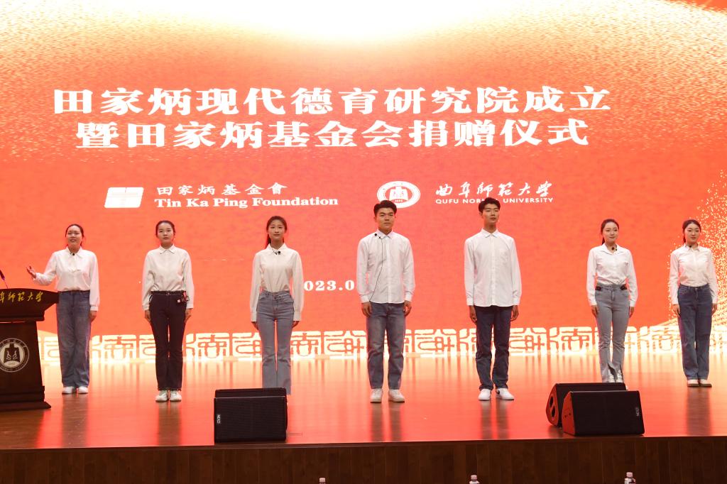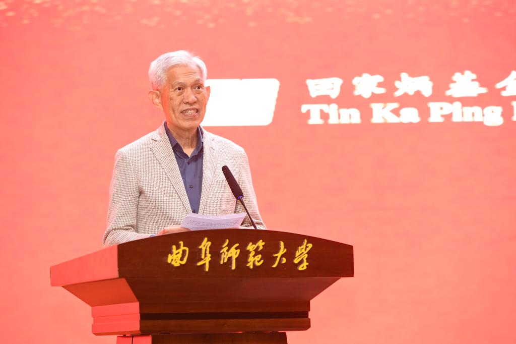 田庆先在致辞中表示,在曲阜师大成立田家炳现代德育研究院,不仅是与曲阜师大再续前缘,也将强化与志同道合的教育机构、学者、社会组织的合作关系,推动可持续发展的、能够产生深远影响的德育项目。希望曲阜师大成为全国田家炳学校教师的研修基地,帮助各地田校教师的专业发展,巩固校本德育及传统文化教育教学经验,通过多元途径、创新模式推广德育课题成果,塑造田家炳学校立德树人的育人理念。