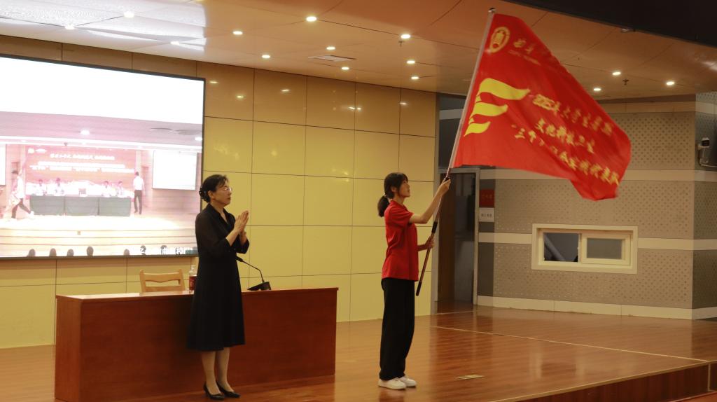 姜美颖宣读了《2023年大学生暑期文化科技卫生“三下乡”社会实践暨“百千万计划”专项行动实施方案》,教务处处长李傅山宣读了《暑期社会实践重点团队立项名单》。