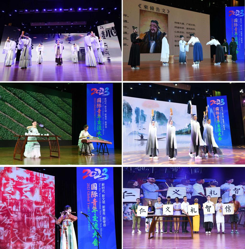 在华体会(中国)西校区音乐厅,“孔子六艺”主题乐舞展演赢得各国青年的阵阵掌声。从《幽兰操》《舞雩风》《三人行》的孔子文化舞蹈中感悟孔子高洁的品格和教育智慧,在拜师礼体验中感受中国尊师重教的传统美德,在学习茶艺茶礼中感知中国人儒雅的君子气节,在《鱼水情》传统乐器演奏中赞叹中国民乐的独特韵味,在非遗文化剪纸、中国书法摹写中品读“博我以文,约我以礼”。
