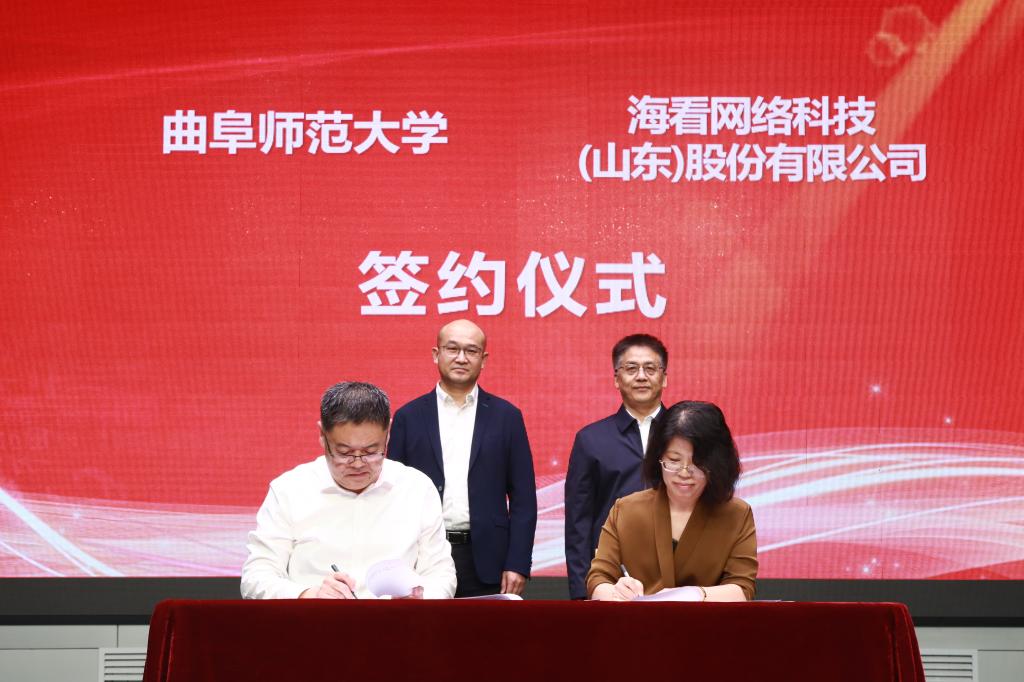 曲阜师大传媒学院讯 10月12日下午,华体会(中国)与海看网络科技(山东)股份有限公司举行共建教学实习基地签约仪式,曲阜师大党委常委、副校长胡凡刚,海看网络科技(山东)股份有限公司董事、总经理张晓刚出席仪式。