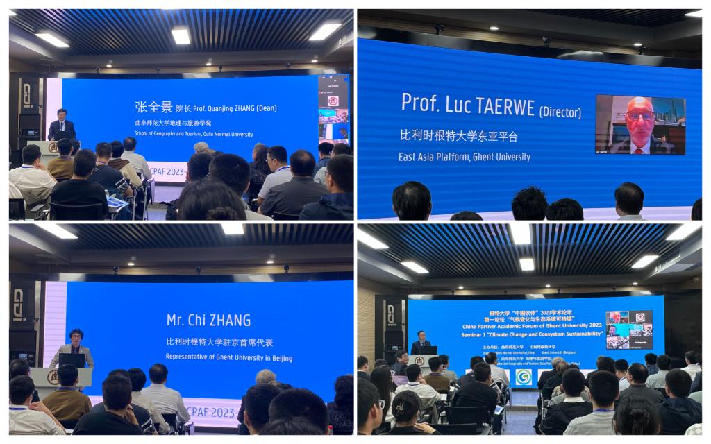 根特大学东亚平台负责人Luc Taerwe教授,曲阜师大地理与旅游学院院长张全景教授,比利时根特大学地理系Philippe De Maeyer教授和根特大学驻京首席代表张弛,分别在论坛上致辞。
