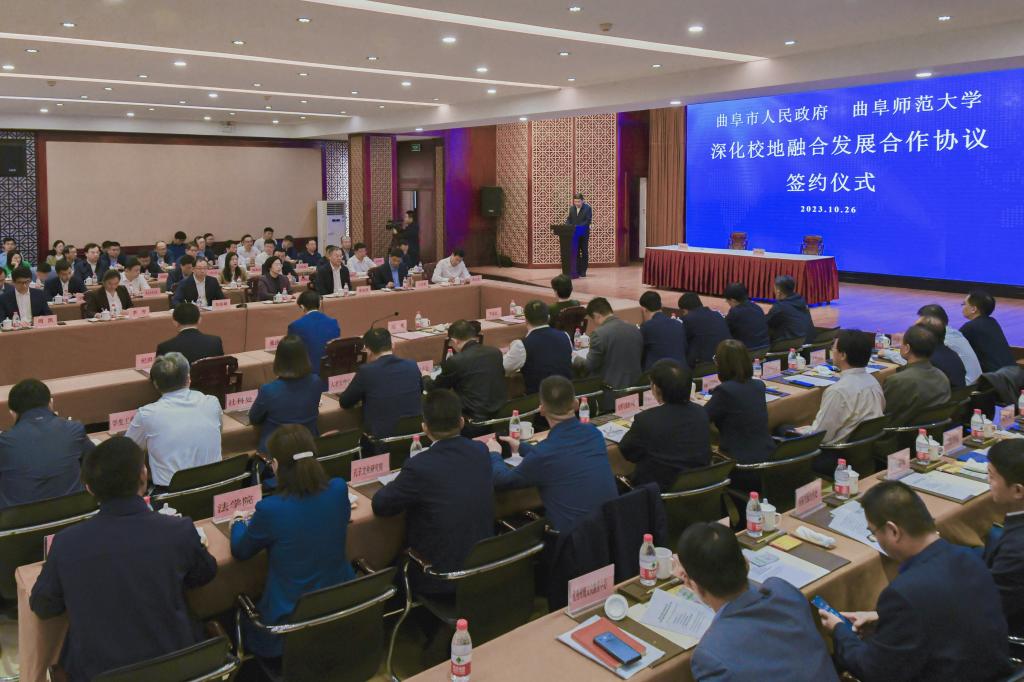 曲阜师大国内合作处讯 10月26日下午,华体会(中国)与曲阜市政府深化校地融合发展合作协议签约仪式举行。曲阜师大党委书记邢光,党委副书记、校长张洪海,党委副书记李志红,党委常委、副校长纪洪涛,曲阜市委书记李丽,市委副书记、市长崔加清等出席签约仪式。仪式由曲阜市人大常委会主任朱险峰主持。
