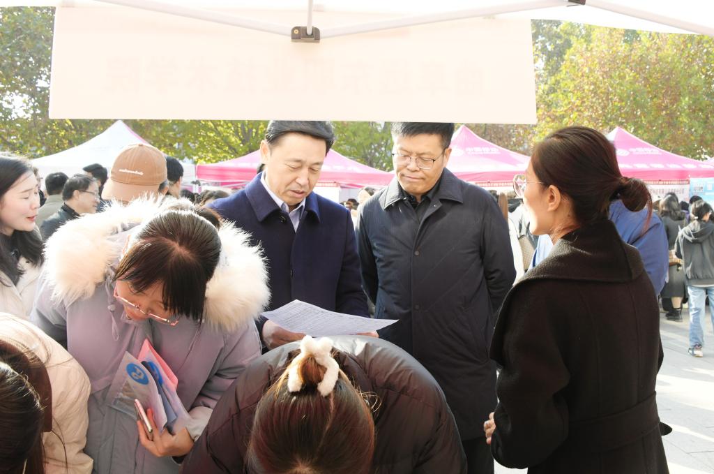 学生工作处讯  为发挥校园招聘主渠道作用,搭建用人单位与学生沟通的桥梁,推动毕业生高质量充分就业,11月19日,曲阜师大2023年秋季校园专场招聘会在明心扬帆就业广场举办。学校党委副书记、校长张洪海,学校党委副书记卢国强亲临现场与用人单位及毕业生洽谈交流。