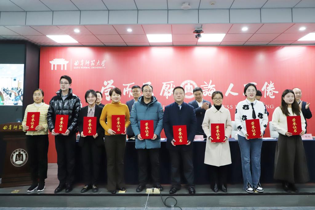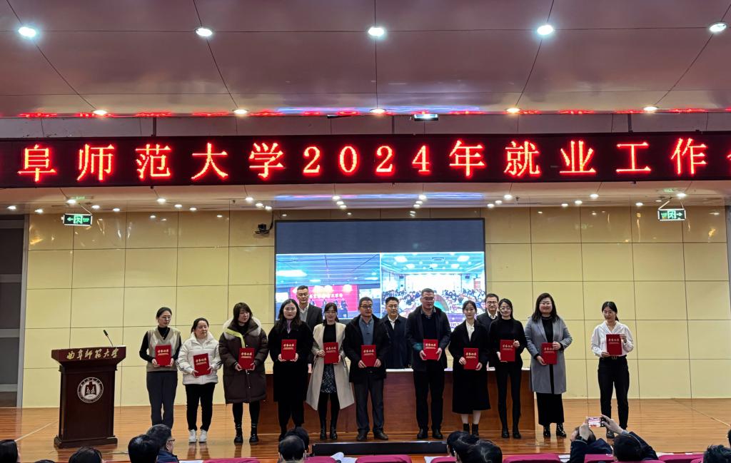 胡凡刚宣读了2023年就业工作先进单位和先进个人获奖名单。学校领导为获奖代表颁发荣誉奖牌和证书。