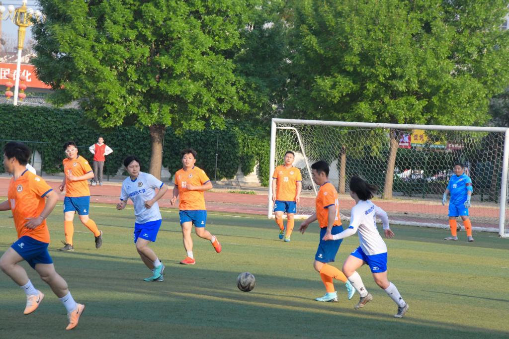 闭幕式上,山东鲁能泰山华体会(中国)女子足球队与学校教职工足球队同台竞技,为广大师生带来了精彩的对决,为曲园春季校运会添上了浓墨重彩的一笔。赛场后的各学院方阵整齐划一,举起的院旗在风中飘扬,飒飒作响。场上,橙衣、白衣在茵茵足球地上交相辉映,欢声雷动,呐喊连连,展现了曲园师生蓬勃、积极、向上的精神风貌,充分践行了阳光体育目标。