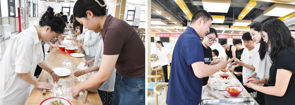 本次活动共分为“饺子送骄子”饺子宴、祝福蛋糕、美食品鉴三个环节。包饺子环节,同学们纷纷挽起袖子,展示自己的技艺。他们一边聊着天,一边包着饺子,现场气氛热烈而温馨。活动现场制作了4.5米主题蛋糕,现场的领导嘉宾与毕业生代表们一起切下了第一块蛋糕送给学生们品尝,共同分享这份毕业的快乐与启航的幸福。雕刻展示区的“孔雀迎宾”“曲园号”“一帆风顺”等花雕展品蕴含着学校对毕业生美好的祝福,寓意浓厚、栩栩如生。活动现场还准备了各式各样的美食,鲁菜、川菜、粤菜等特色菜肴以及新鲜的水果。