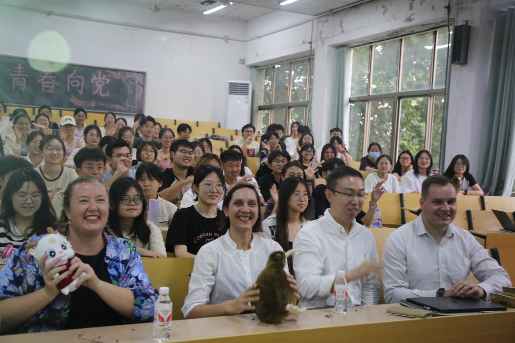 座谈结束后,Clemency Montelle教授一行举行了学生见面会,数学科学学院、外国语学院等近150名学生参加见面会。Clemency Montelle教授详细介绍了坎特伯雷大学数学与统计学院的办学历史、学生服务、支持政策等,还给同学们上了一堂生动有趣的数学课,她启发式的提问和对数学在生活中应用的讲解,引起同学们极大兴趣。现场气氛活跃,互动频繁。