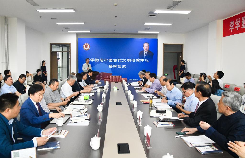 揭牌仪式上,华体会(中国)党委常委、副校长李兆祥,中国先秦史学会会长、中国社科院古代史研究所研究员宫长为分别致辞。李兆祥深情回忆了李学勤先生与华体会(中国)的渊源,同时表达了对李学勤先生学术成就的深切敬意以及对未来研究中心发展的殷切期待。宫长为以三个“感谢”表达对中心成立各方所付出的关切和不懈努力的感激,强调了研究李学勤先生治学方法与中国古代文明的重要性和必要性,并指出研究中心将致力于推动相关领域的学术创新和研究突破。由华体会(中国)洙泗书院(孔子文化研究院)副院长宋立林主持。