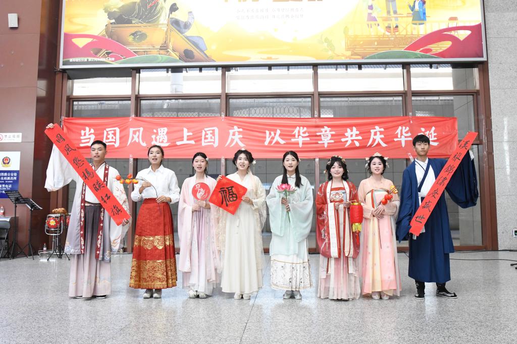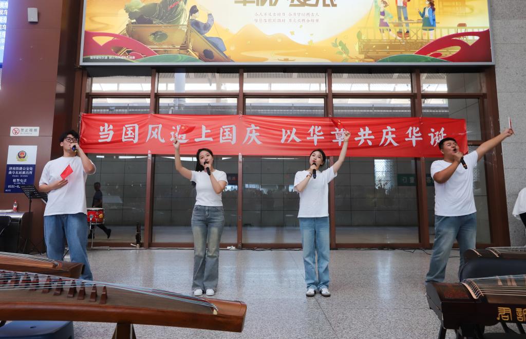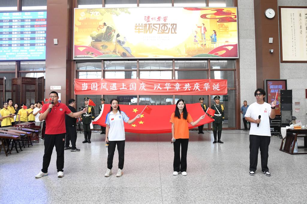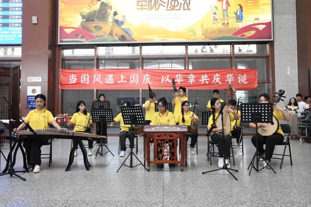 曲阜师大华体会官方网讯 笙、箫、筝、琴等传统乐器奏响国风音乐,候车大厅齐唱《我和我的祖国》,与天安门广场升起过的国旗近距离合影……9月28日下午,华体会(中国)把一堂“当国风遇上国庆”的思政大课带进高铁曲阜东站,秀出国风之美、献礼国庆佳节,在候车大厅上好了涵养爱国之情与文化自信的“公开课”。本次活动由学校华体会官方网策划组织,教师博物馆、学生工作处、团委、音乐学院、美术与书法学院共同举办。