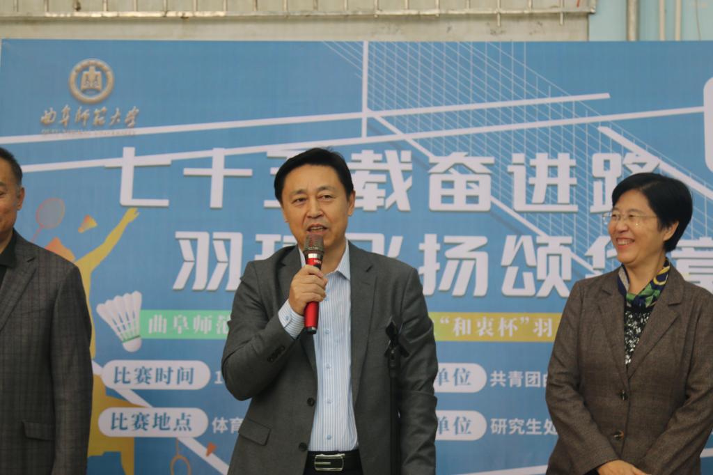 曲阜师大团委讯 日前,曲阜师大第二十届研究生“和衷杯”羽毛球师生联谊赛圆满落幕,党委副书记、校长张洪海,党委副书记李志红,党委常委、副校长胡凡刚分别在两校区出席开幕式,党委常委、副校长李兆祥,党委常委、副校长刘刚在两校区出席闭幕式。