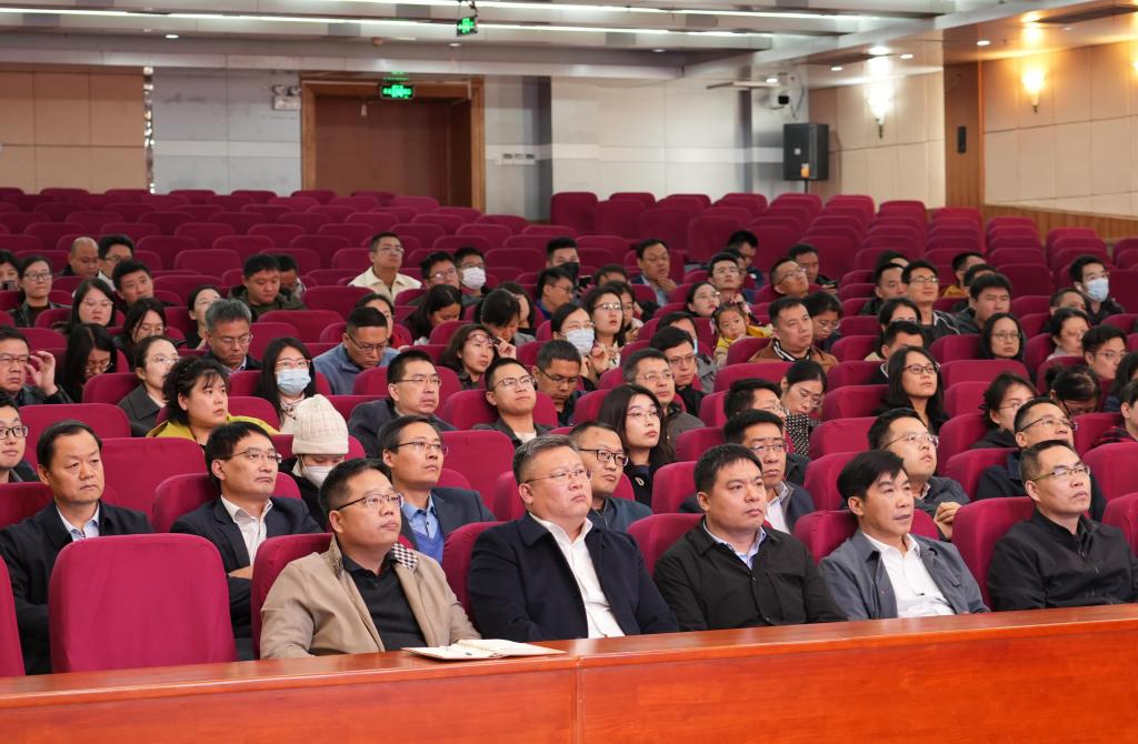 张洪海指出,高校科研工作面临新的形势任务,国家将教育、科技、人才一体推进,高校作为三者的交汇点,科研工作在服务国家急需、推进学科建设、促进人才培养、提升学校综合竞争力等方面作用得到加强。全体教职工应树牢“服务乃宗旨、贡献即发展”的理念,服务国家和区域战略,增加科研工作与经济社会发展的契合度。聚焦学科建设所需,坚持科研与学科、人才一体化设计并推进,把有组织科研与领军人才、科研团队和青年人才成长紧密结合。
