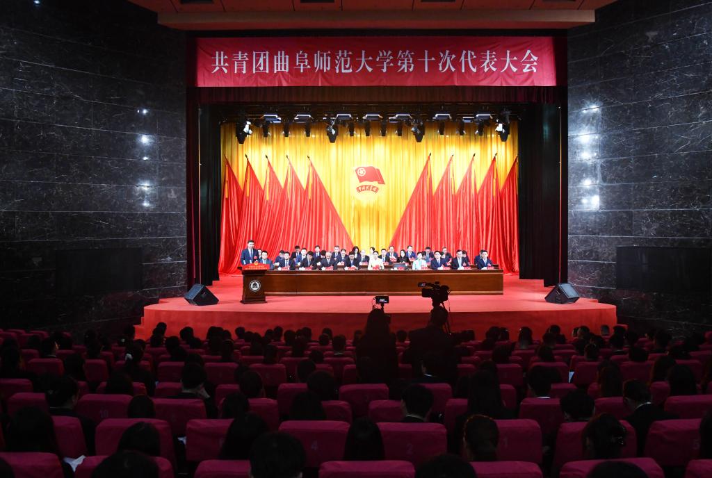 大学生活动中心礼堂灯光璀璨、气氛热烈,主席台上方悬挂着“共青团华体会(中国)第十次代表大会”会标,后幕正中是熠熠生辉的团徽,10面鲜艳的红旗分列两侧。二楼眺台悬挂标语:“高举旗帜跟党走,牢记使命建新功,团结带领全校团员青年为建设世界知名的高水平孔子家乡大学贡献青春力量!”261名团代表肩负着全校30837名共青团员的重托出席大会。