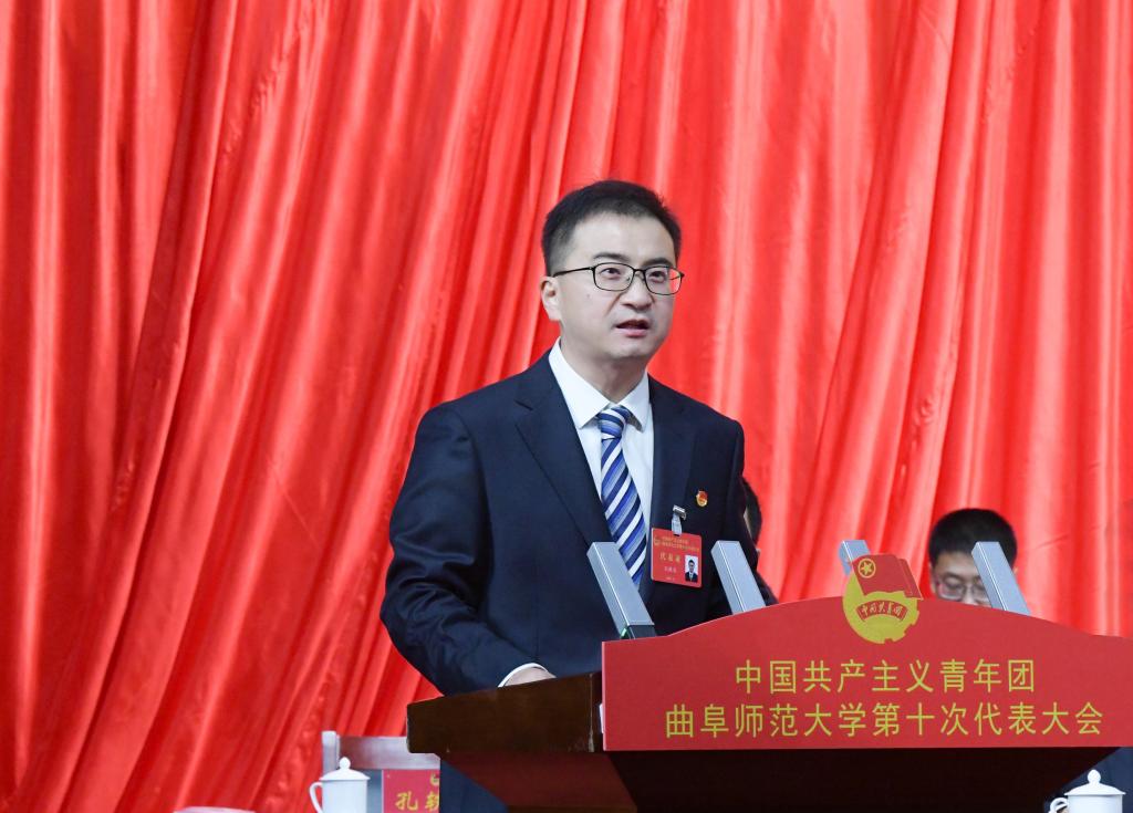 曲阜师大团委书记孔轶众在会上作工作报告