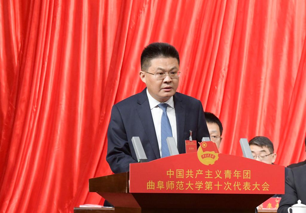 学校党委书记邢光代表学校党委向大会的召开表示祝贺,并充分肯定了第九次团代会以来学校共青团的工作。邢光指出,校团委认真履行党赋予的职责使命,发扬“党有号召,团有行动”的光荣传统,努力适应时代发展新趋势,积极应对青年需求新变化,围绕中心、服务大局,在思想引领、校园文化、社会实践、志愿服务、创新创业等方面做了大量卓有成效的工作,开创了曲阜师大共青团工作的新局面。