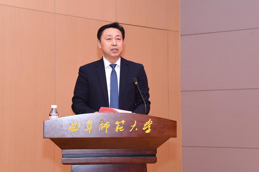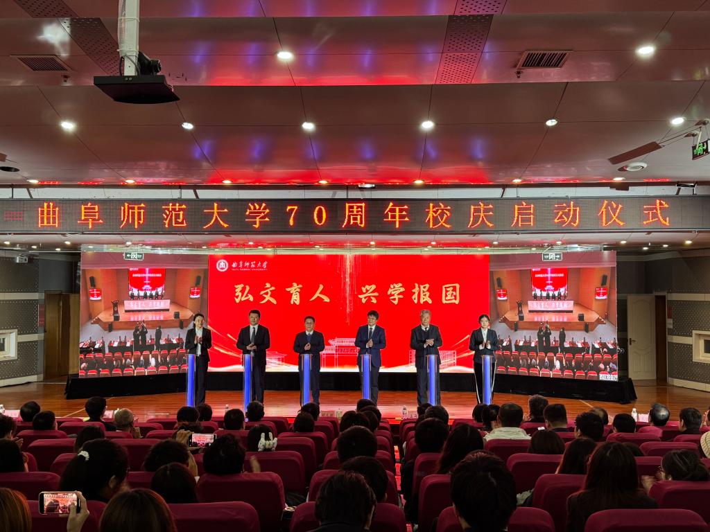 张洪海指出,70周年校庆是一场盛宴、也是一次检验,是一场展示、也是一次检视,全校上下要围绕中心、突出重点、服务大局,加强领导、明确责任、分工协作,统筹兼顾、细化举措、推动发展,以优异的成绩和丰硕的成果向学校70华诞献礼。张洪海在仪式上代表学校向海内外广大校友、向社会各界友人发出诚挚邀请,期待大家相约曲园、共襄盛典、共话蓝图,携手开创孔子家乡大学更加美好的明天。