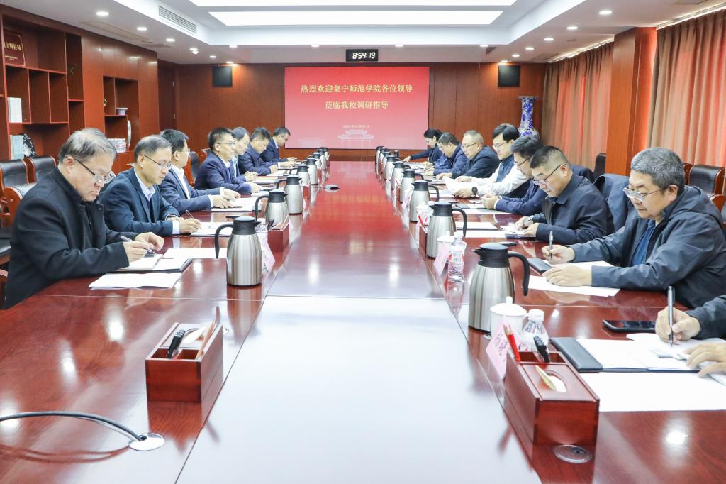 华体会官方网讯  11月27日,集宁师范学院党委副书记、校长张宝成,党委委员、副校长拓俊杰一行到曲阜师大访问交流。曲阜师大党委副书记、校长张洪海,党委常委、副校长胡凡刚会见张宝成一行并座谈。