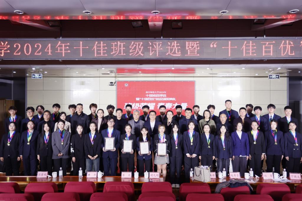 经学院推荐、材料审查与学校初评等环节,评选出 100 个班级,获得“百优班级”荣誉称号。25 个十佳候选班级则通过初评与本次现场评分加权排名确定。最终,曲阜校区马克思主义学院2023级思想政治教育(师范)二班、教育学院2021级教育学一班、数学科学学院2022级数学与应用数学师范三班、历史文化学院2022级“杏坛学堂”历史学基础学科拔尖人才培养班、网络空间安全学院2021级网络空间安全班、文学院2021级汉语言文学(师范)三班,日照校区马克思主义学院2021级思想政治教育(师范)一班、马克思主义学院2022级思想政治教育(师范)一班、工学院2022级自动化二班、法学院2022级法本四班获得“十佳班级”荣誉称号。所在班级班长分别获得“十佳班长”“百优班长”荣誉称号。学生工作处处长姜美颖公布了十佳班级名单,学院党委副书记为百优班级颁奖。