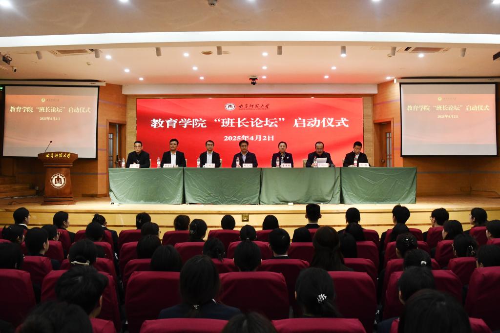 仪式由教育学院党委书记尹树林主持,院长唐爱民宣读活动实施方案。学生工作处处长姜美颖在致辞中对教育学院策划实施举办"班长论坛”,聚焦学生干部培养与发展的创新举措表示肯定。并结合教育学院的创新实践,对在场的学生干部们提出四点建议:一是以政治引领为舵,筑牢信仰根基;二是以道德示范为锚,涵养浩然之气;三是以能力提升为桨,坚持守正创新;四是以心理强健为帆,培育阳光心态。