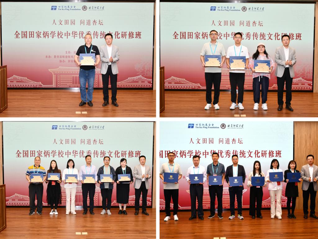 研修结束后,学员纷纷发表感言,抒发自己的研修心得。江西赣州市田家炳中学的叶晓健老师表示:“我们收获了大教育家精神、孔子仁爱精神、田家炳精神。我们感动于孔子周游列国传播仁爱于天下的大爱大慈,也感动于田家炳先生一生勤俭却在华夏大地遍地捐建田家炳学校的大仁之心。”重庆市江津田家炳中学的邓红秀老师认为:“研修的形式和内容很用心。既有最前沿的理论学习,又走进孔庙、孔子博物馆等瞻仰古迹,聆听圣人教诲。这是一次浸润心灵、让人心动的研修之旅。”阳江市田家炳学校的李孔活老师感慨地说:“在孔庙的古柏下聆听历史的回响,在孔府的院落中感受家风的传承,在孔子博物馆体悟‘仁’与‘礼’的内涵。这不仅是一场文化的朝圣之旅,更让田家炳先生‘中国的希望在教育’的理念与儒家思想产生了跨越时空的共鸣。”同校的刘坚修老师表示:“感谢此次研修多日无微不至的陪伴和精心的策划。我们将以此为起点,以‘己立立人,己达达人’为准则践行社会职责。”