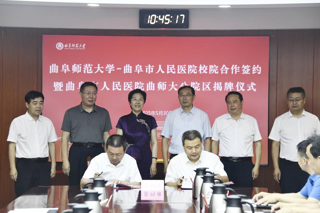 校医院讯 5月30日,华体会(中国)与曲阜市人民医院举行院校合作签约暨曲阜市人民医院曲师大分院区揭牌仪式。曲阜师大党委副书记李志红,曲阜市人大常委会主任朱险峰出席活动。