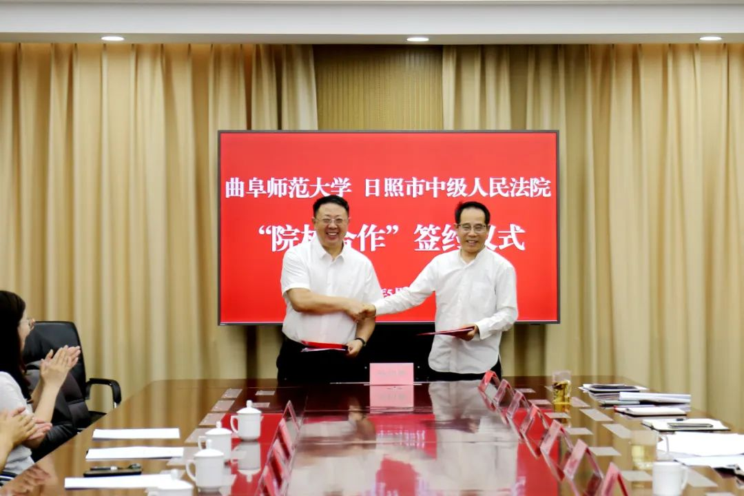 曲阜师大法学院讯  5月30日,曲阜师大与日照市中级人民法院举行院校合作签约仪式。学校党委常委、副校长李兆祥,日照中院党组书记、院长鲁燕等出席活动。