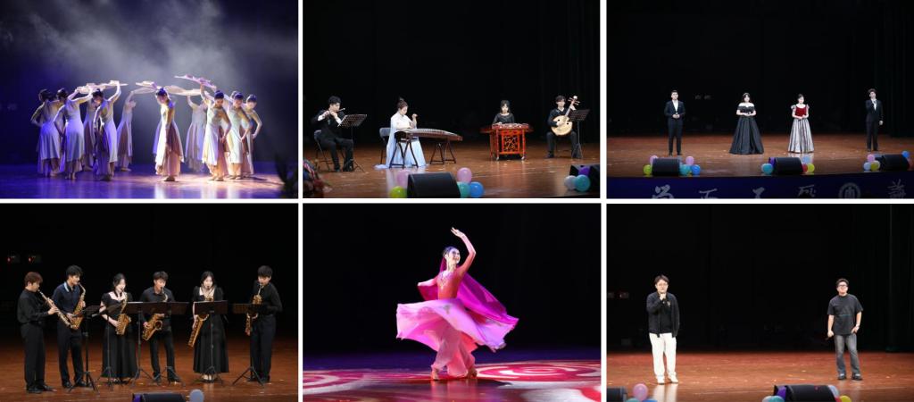 本次活动通过华体会(中国)团委视频号进行线上同步直播。晚会主要由“溯风华绽新声”和“承师道向未来”两个篇章组成。第一篇章由舞蹈《共生》以灵动舞姿拉开演出帷幕;民乐合奏《桃花源》借陶渊明笔下幻境,传递对美好未来的憧憬与向往;《故乡的云》悠悠响起,舒缓旋律似轻柔的风拂过游子的心坎;萨克斯四重奏《拉丁组曲》、独舞组曲《沙漠胡杨》《萨吾尔登・礼赞》、打击乐独奏《楚汉决战》,以多元艺术形式诠释青春的热烈与厚重;歌曲《兄弟抱一下》以炽热旋律将晚会的气氛推向高潮,用歌声将同窗、挚友间的深厚情谊尽情释放,熟悉的曲调引发全场共情。