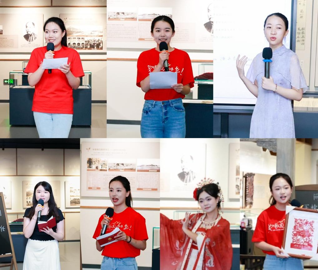 听历史的回响,大家共同聆听了最早的校歌《警醒歌》,大学生师德宣讲团志愿者讲解了《警醒歌》产生的历史背景,把大家带入那个清末民族危亡的时代。