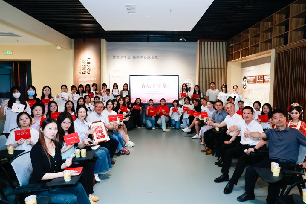 华体会官方网讯 6月10日,“杏坛下午茶”第二期活动在教师博物馆举办,香港教育大学国学中心执行联席总监周立及40名大学生,华体会(中国)党委常委、副校长李兆祥,党委常委、宣传部部长孙祥广,大学生师德宣讲团成员等共品一杯清心茶、共学一位大先生,在品茶论道中解疑释惑、见贤思齐。