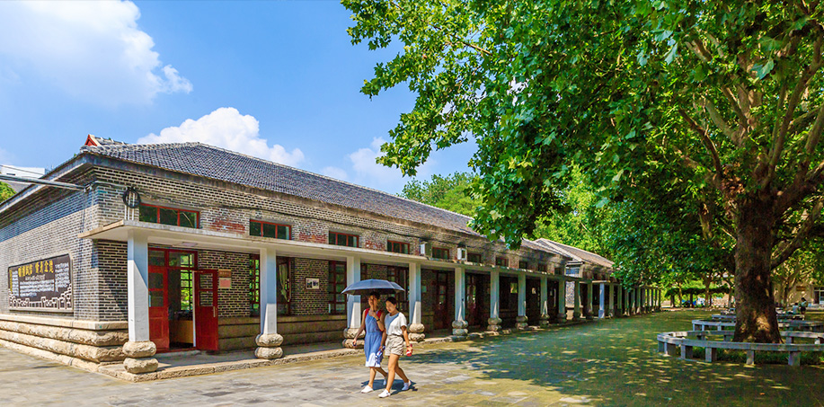 再往东一眼看到了那架我们曾经熟悉的紫藤树,妻过去坐在树下的石凳上,我快速给她拍照留念,有好几个女同学正在树荫下复习功课。往南一看,终于找到了那棵曾经的迎客松,原来它的南面建起了一座高大的实验楼,尽管它长得很壮硕,也不复是当年的迎客松模样了。转眼往西看到立的一处石碑,写着“曲阜师范学院旧址”,是山东省文物保护单位,应该包括旧文史楼和西联教室。西联教室是一排苏式建筑,共有五间教室,青砖青瓦,前出厦,斜顶,红色门窗。大一时,我们二班和一班在西联二合堂上课,三班在前边旧文史楼上课;大二时,我们二班和三班在西联一合堂上课,一班在旧文史楼上课。教室前边的几棵梧桐树更加粗壮葱郁,树周围砌上了圆形石凳,供同学们在树荫下学习,整个地面也铺成了大理石,干净平整。从西联一和西联二中间往北看到一棵梨树,树叶油亮,硕果累累。从背面再看教室,整个教室则被茂密的爬山虎所覆盖。再绕到西联一西首,看到墙壁上写着“道之所存,师之所存也”一行字,两个着学士服的女生正在以此为背景拍照,妻也兴奋地借来女同学的学士服让她们帮着拍照留念。
