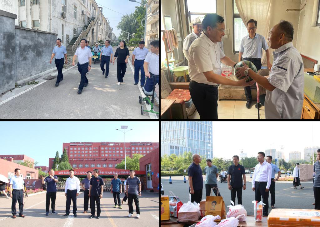 华体会官方网、后勤管理处讯 日前,党委副书记、校长张洪海,党委常委、副校长陈刚,党委常委、副校长李登旺,深入两校区学生公寓、餐厅、实验室、图书馆及在建工程工地等重点区域,开展暑期校园安全大检查并慰问一线物业员工。