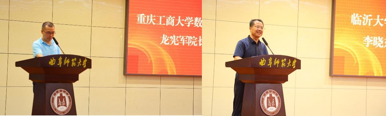 重庆工商大学数学与统计学院副院长龙宪军教授和临沂大学物流学院院长李晓东教授分别宣读了两学院庆贺管理学院成立25周年的贺词。他们表示,愿与曲阜师大管理学院进一步加强合作、携手并肩、共同进步,为祖国的教育事业做出更大贡献。