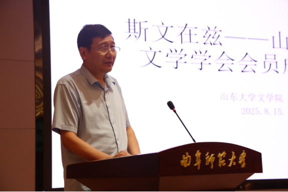 开幕式结束后,山东省古典文学学会举行2025年换届大会。换届大会由山东大学文学院党委书记郭春晓主持。山东省古典文学学会第六届会长杜泽逊作工作报告,山东省古典文学学会第六届秘书长孙学堂作财务工作报告。